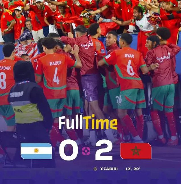 وفي المقابل، حاول المنتخب الأرجنتيني العودة في النتيجة خلال الشوط الثاني، إلا أن الدفاع المغربي وحارس المرمى إبراهيم غوميز تصدوا ببسالة لكل المحاولات، ليحافظوا على التقدم حتى صافرة النهاية، وسط فرحة هيستيرية في المدرجات ودموع الفخر في عيون اللاعبين.